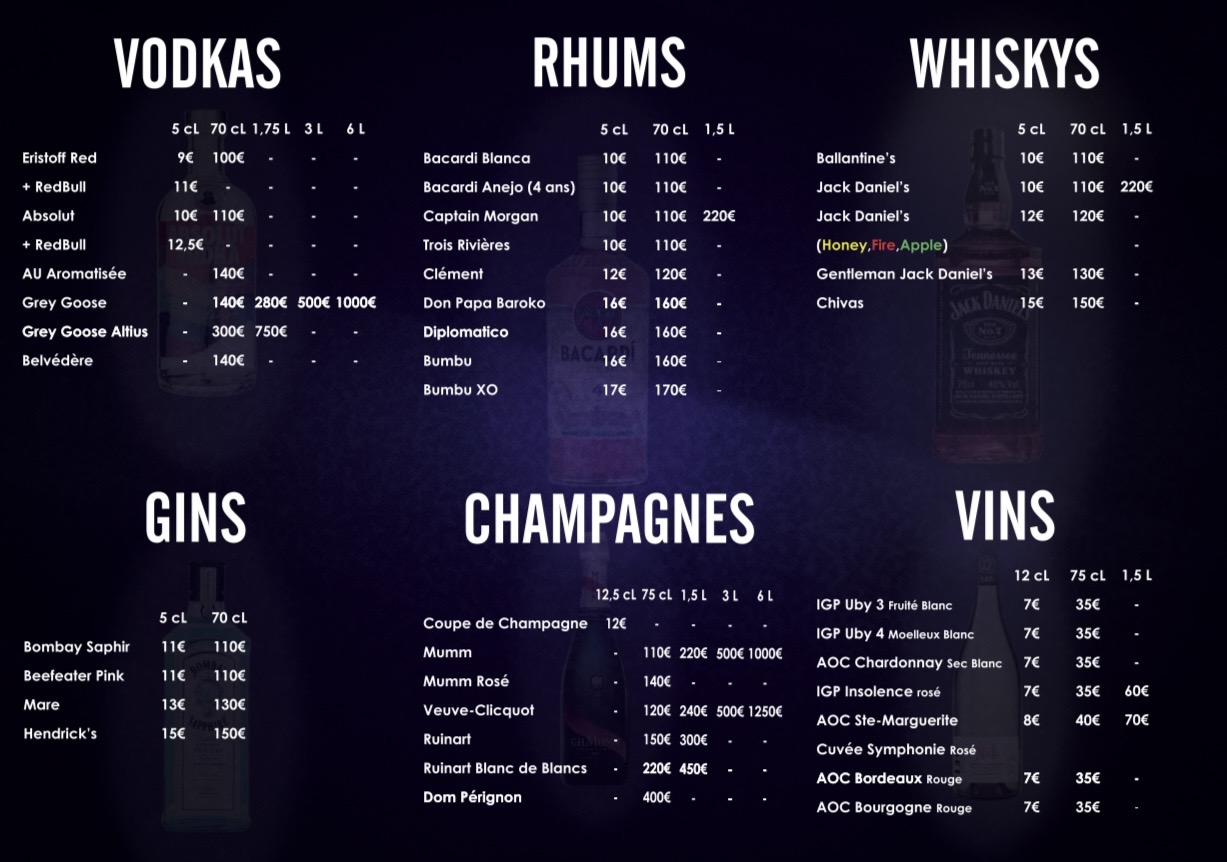 5 cl de Rhum Bacardi Anejo 4 ans, 5 cl de Rhum Captain Morgan, Citron vert, Sucre de Canne.