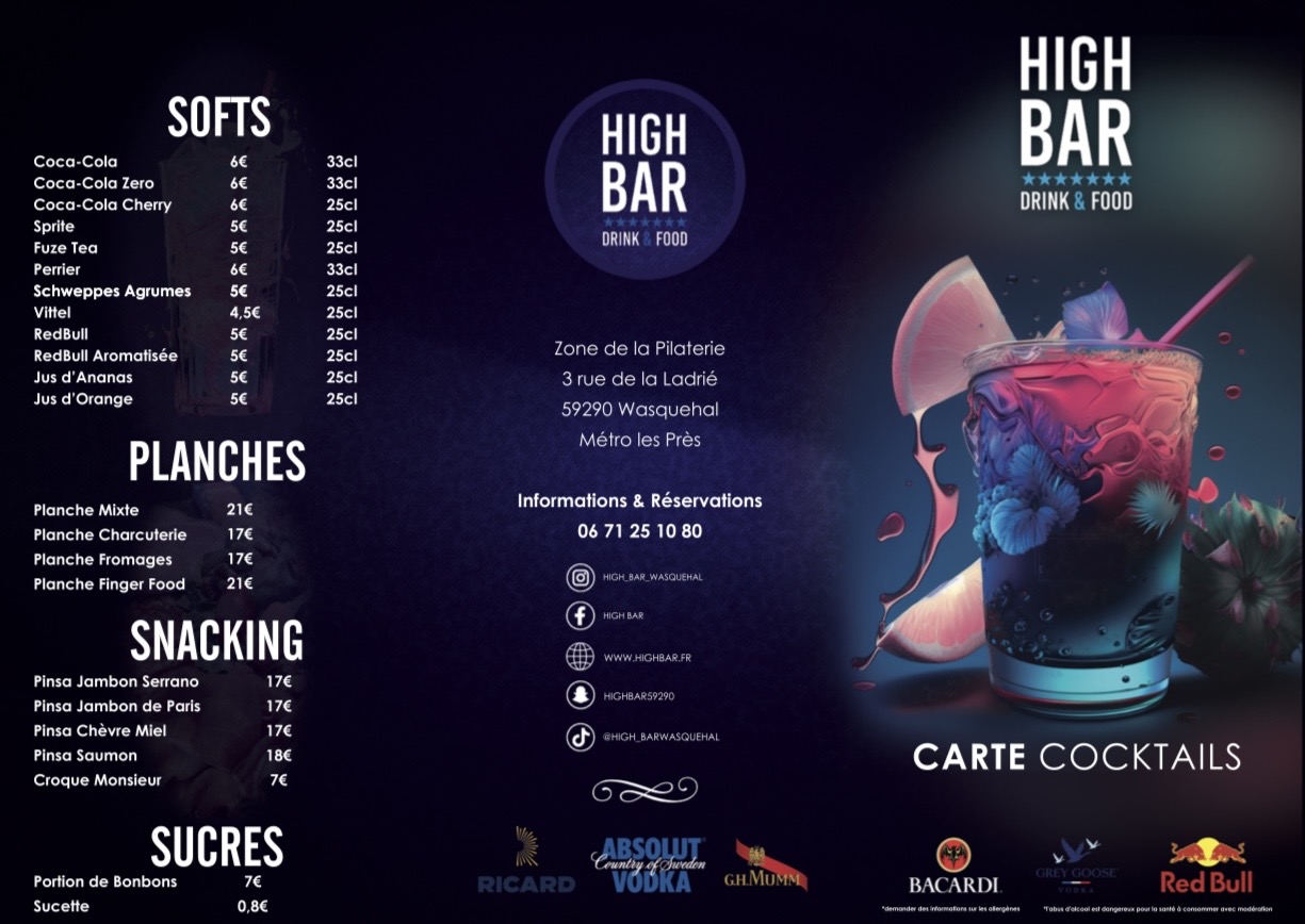 5 cl de Rhum Bacardi Anejo 4 ans, 2,5 cl de Crème de Framboise, Purée de Passion, Citron vert, Jus d’Ananas.